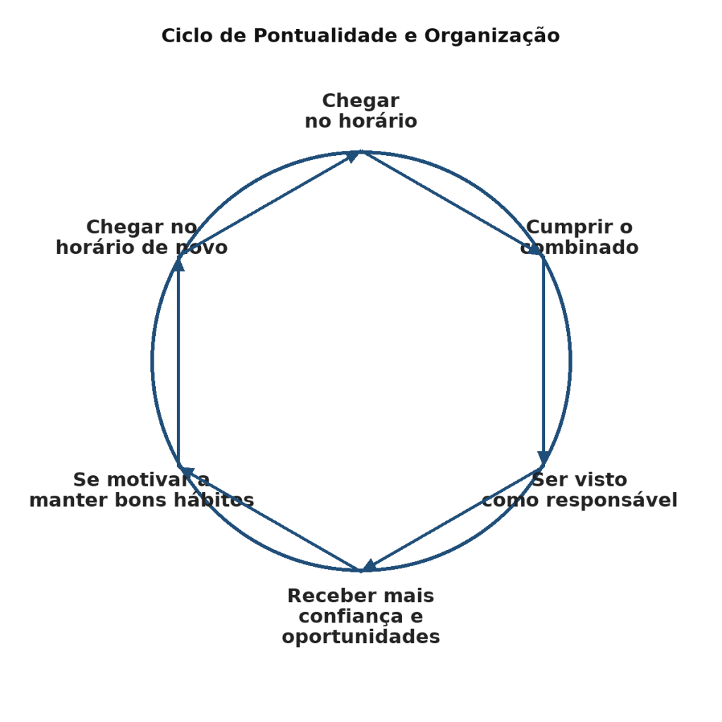 Você pode encarar pontualidade e organização como pequenos hábitos diários que, no conjunto, constroem sua imagem profissional.